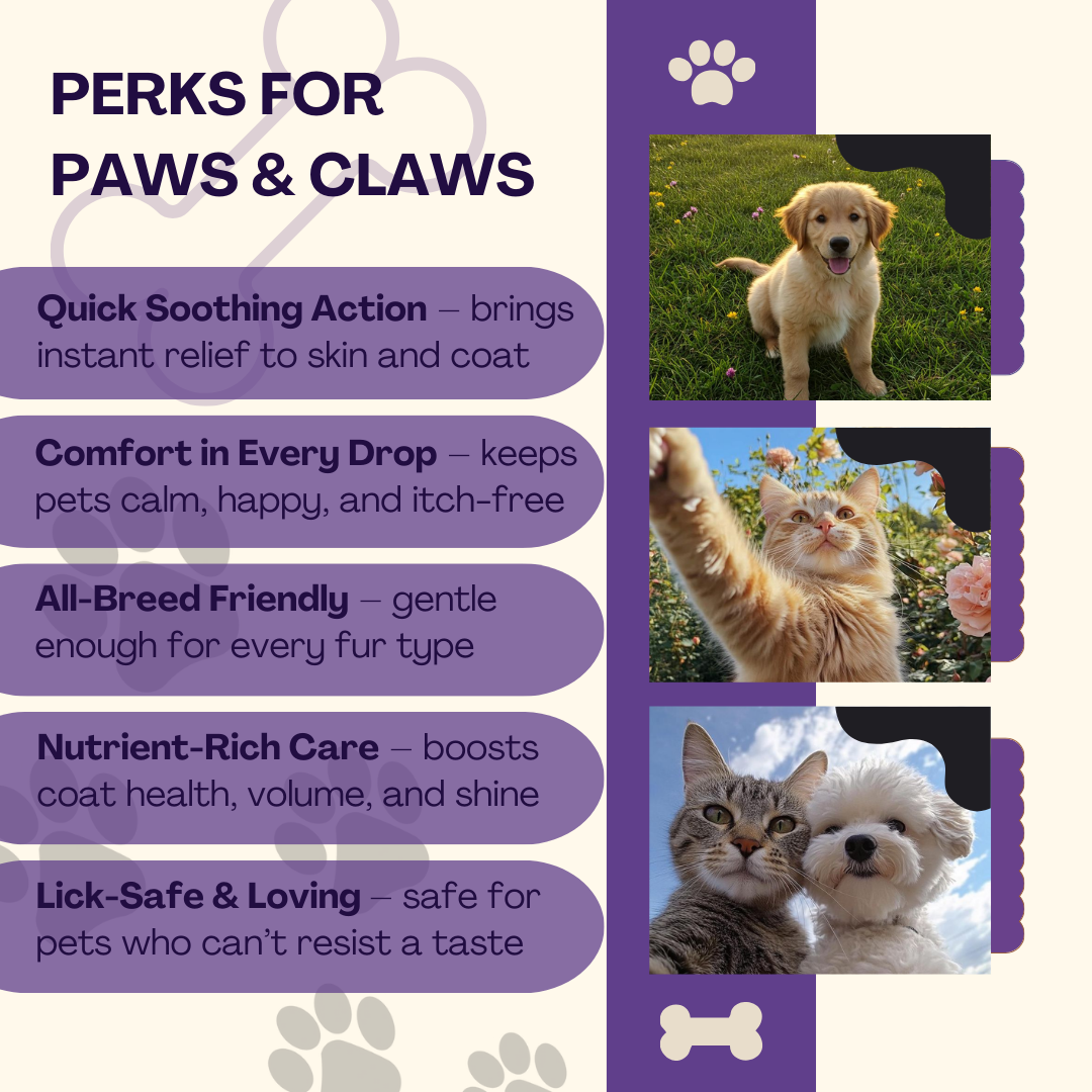 - Â Natural Flea & Tick Defense: Formulated with rosemary, eucalyptus & neem to repel pests & break the tick/flea life cycle.