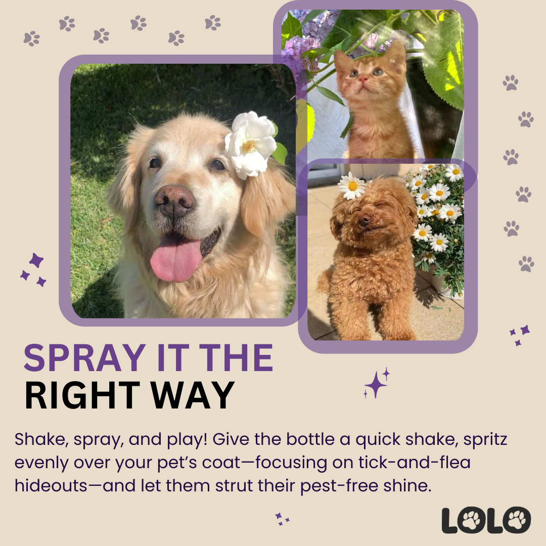 Easy Application: Comes in a convenient spray bottle for hassle-free application. Simply spray directly onto your dog’s coat, focusing on areas where ticks and fleas are commonly found.Â