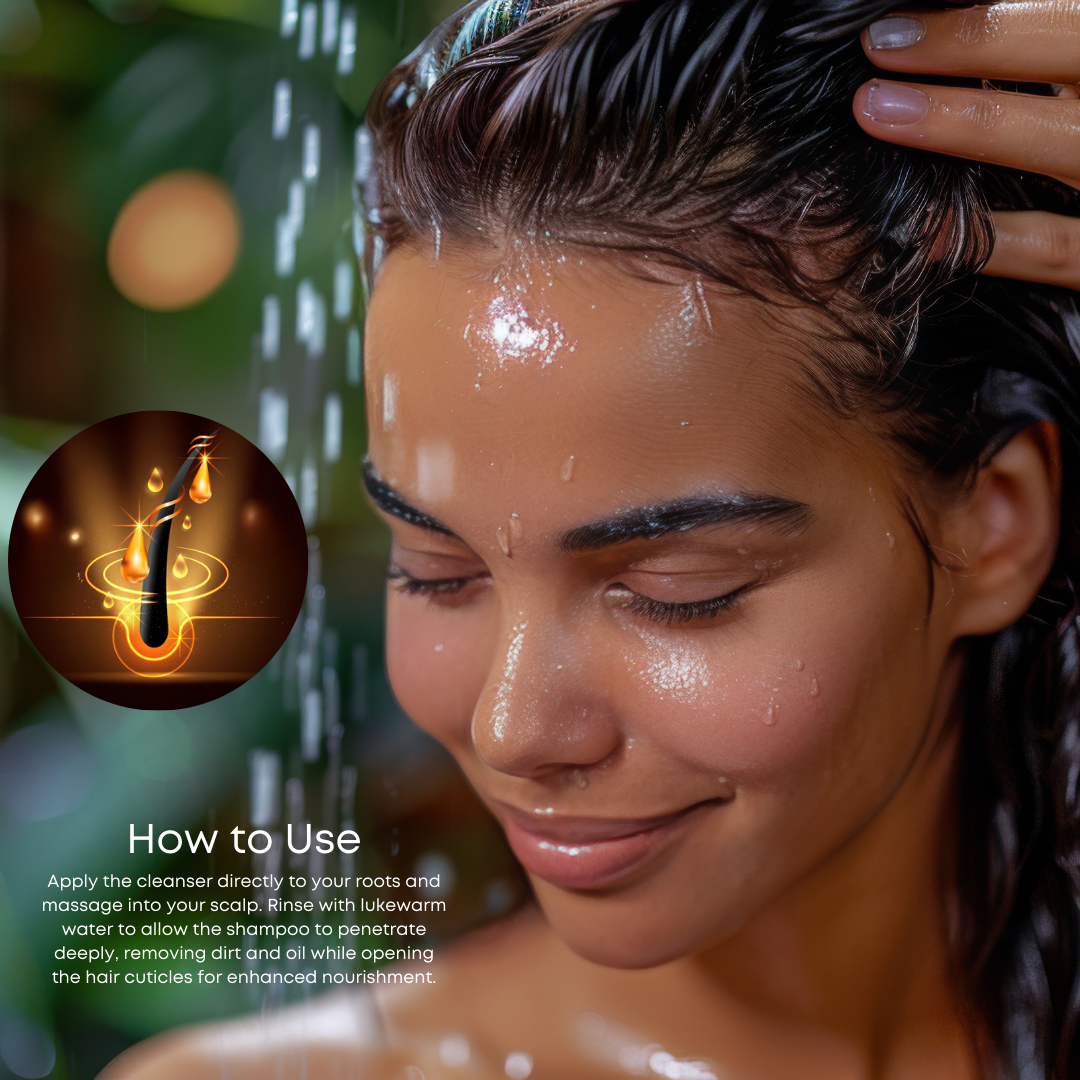 DIRECTIONS: Shake well before use. Apply the shampoo directly to the roots and massage into the scalp. Use lukewarm water to rinse your hair. The warm water will help open the cuticles of the hair so that the shampoo can penetrate deeper and remove dirt and oil.